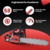 - Heavy Duty 58-cc Petrol Chainsaw, a robust and versatile tool designed for both professional woodcutters and enthusiastic gardeners.