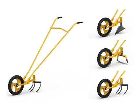 The Hectare Wheel Hoe with Multi-Functional Attachments is a manually operated farm tool that brings the power of several implements into one easy-to-use wheel hoe system. Designed to make gardening and small-scale farming easier, this tool helps you weed, loosen soil (cultivate), and create furrows for planting seeds — without bending or straining your back