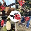 - Featuring a sharped teeth chain, this chainsaw cuts through wood with ease, making it the perfect choice for professional forestry work, land clearing, and firewood cutting. Equipped with advanced technology, this chainsaw offers reduced emissions and improved fuel efficiency, allowing you to work longer and more efficiently.